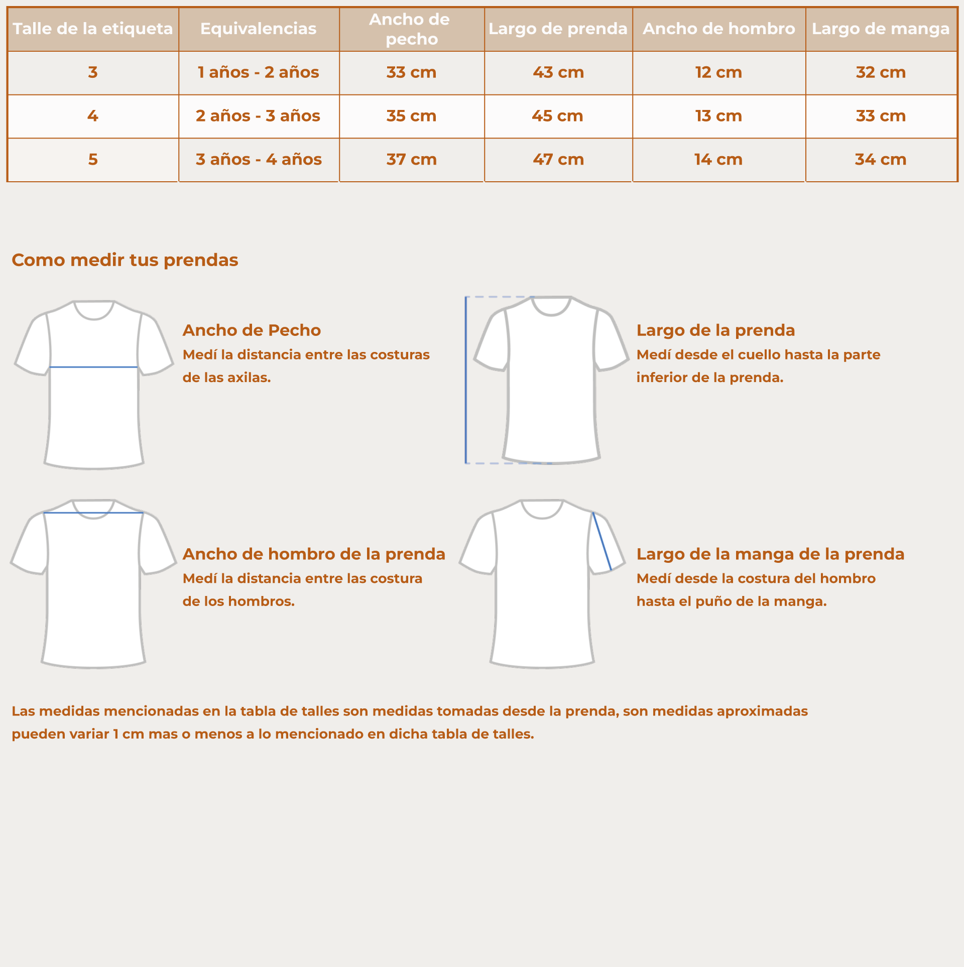 Tabla de Talles