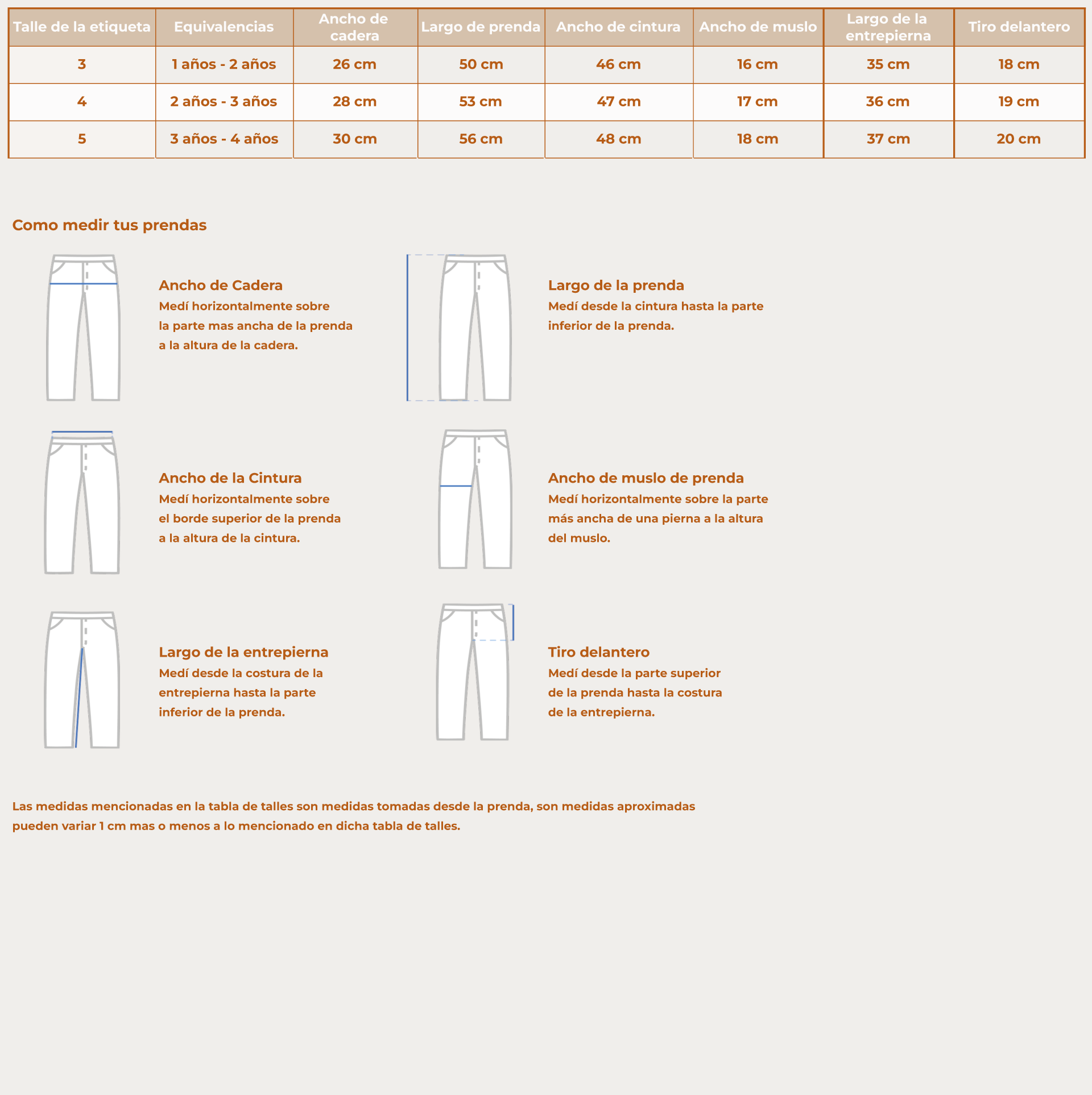 Tabla de Talles